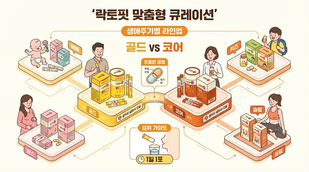 A사 유산균 제품이 비교적 단일한 라인업으로 승부하는 반면, 락토핏은 세분화된 니즈를 충족시키는 ‘맞춤형 큐레이션’이 강점이에요. 사람마다 장 환경과 필요한 기능이 다르므로, 모두가 똑같은 유산균을 먹을 필요는 없으니까요. 락토핏은 이 지점을 파고들어 가족 구성원 각자에게 최적화된 선택지를 제공해요.